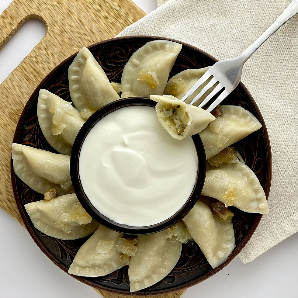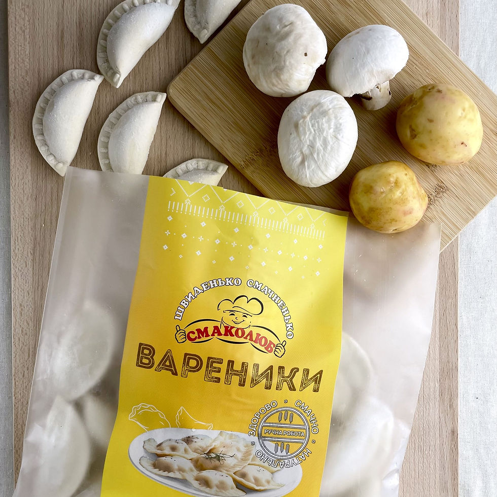 Вареники українська національна страва у вигляді відвареного прісного тіста і начинки з картоплі, м'яса, грибів, овочів, фруктів, ягід та сиру. Вареники - один із символів української національної кухні. В асортименті ТМ Смаколюб вареники солоні, солодкі та пісні.