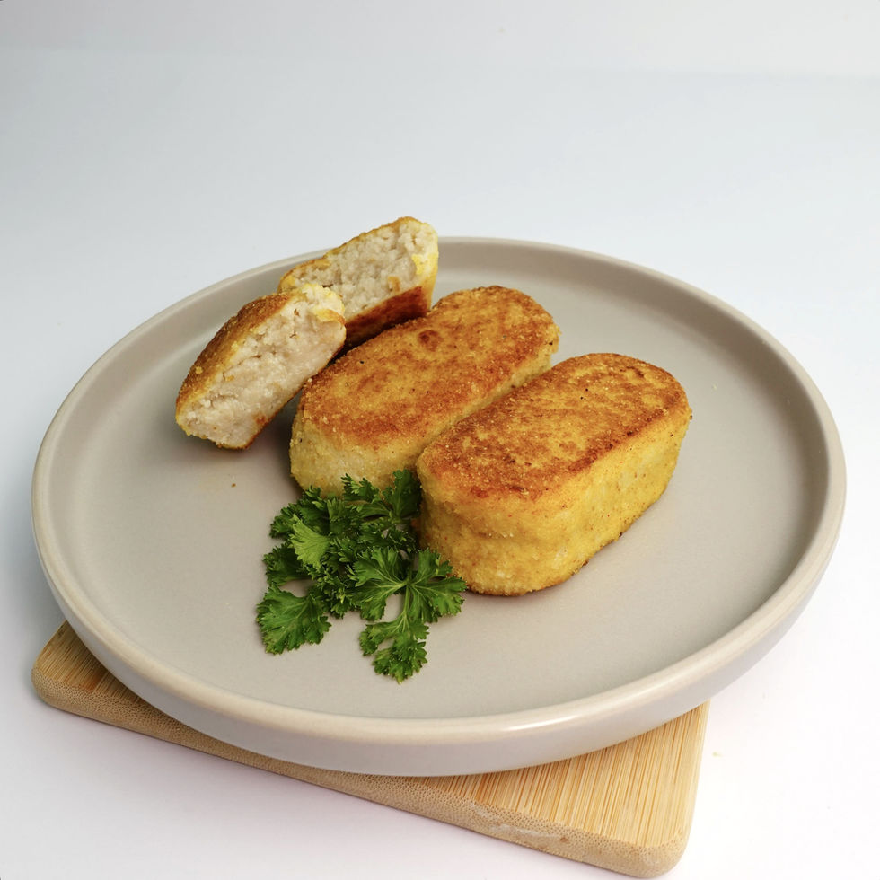 хек заморожений, хліб з пшеничного борошна, цибуля ріпчаста, сухарі панірувальні, крупа манна, сіль кухонна, перець чорний мелений, паприка